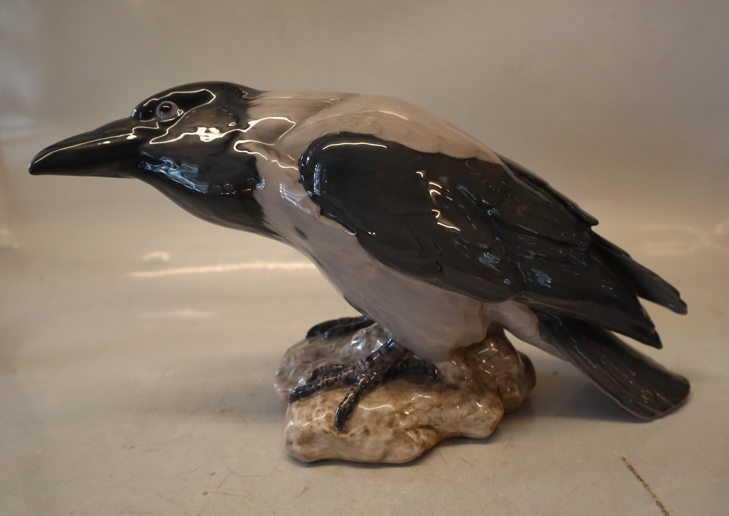 Description: Bing and Grondahl Bird B&G 1714 Large Crow Design Dahl Jensen 17 x 33 cm Marked with the three Royal Towers of Copenhagen. In mint and nice condition