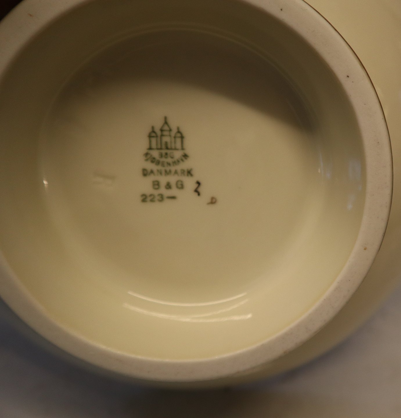 223 Bowl on foot, (medium) 7 x 20 cm (428) Bing and Grondahl Saxon Flower on Cream porcelain Marked with the three Royal Towers of Copenhagen. Bing & Groendahl In mint and nice condition