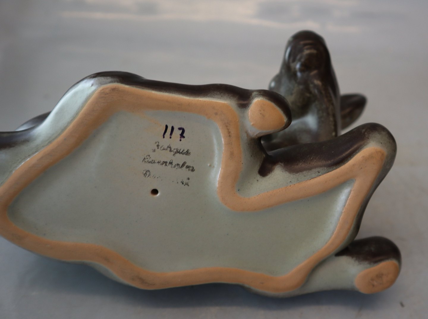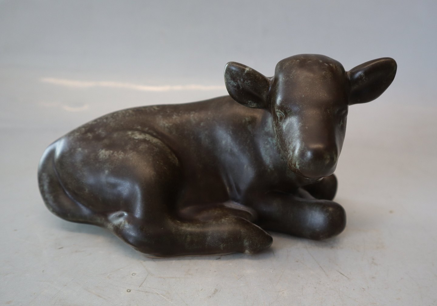 Description: 117 Green Glazed Calf 11.5 x 20 cm JohGus, Bornholm Ceramic