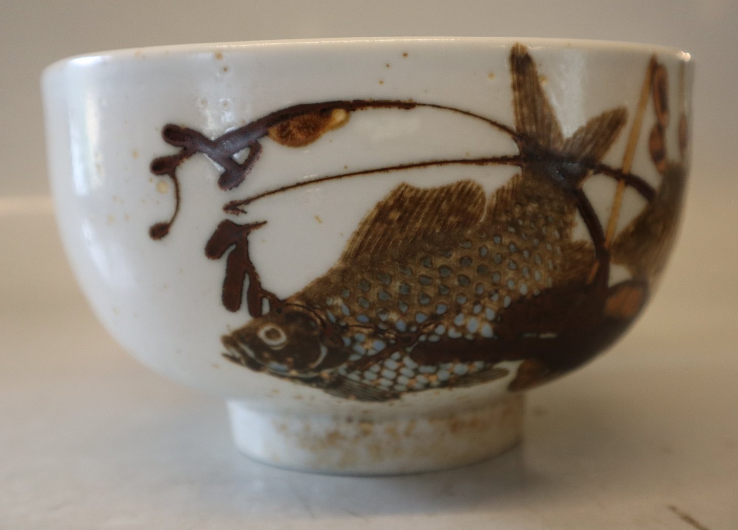 1053-5318 RC Alumnia Diana Stoneware bowl with fish 10 x 17 cm Nils Thorsson Royal Copenhagen Aluminia Faience