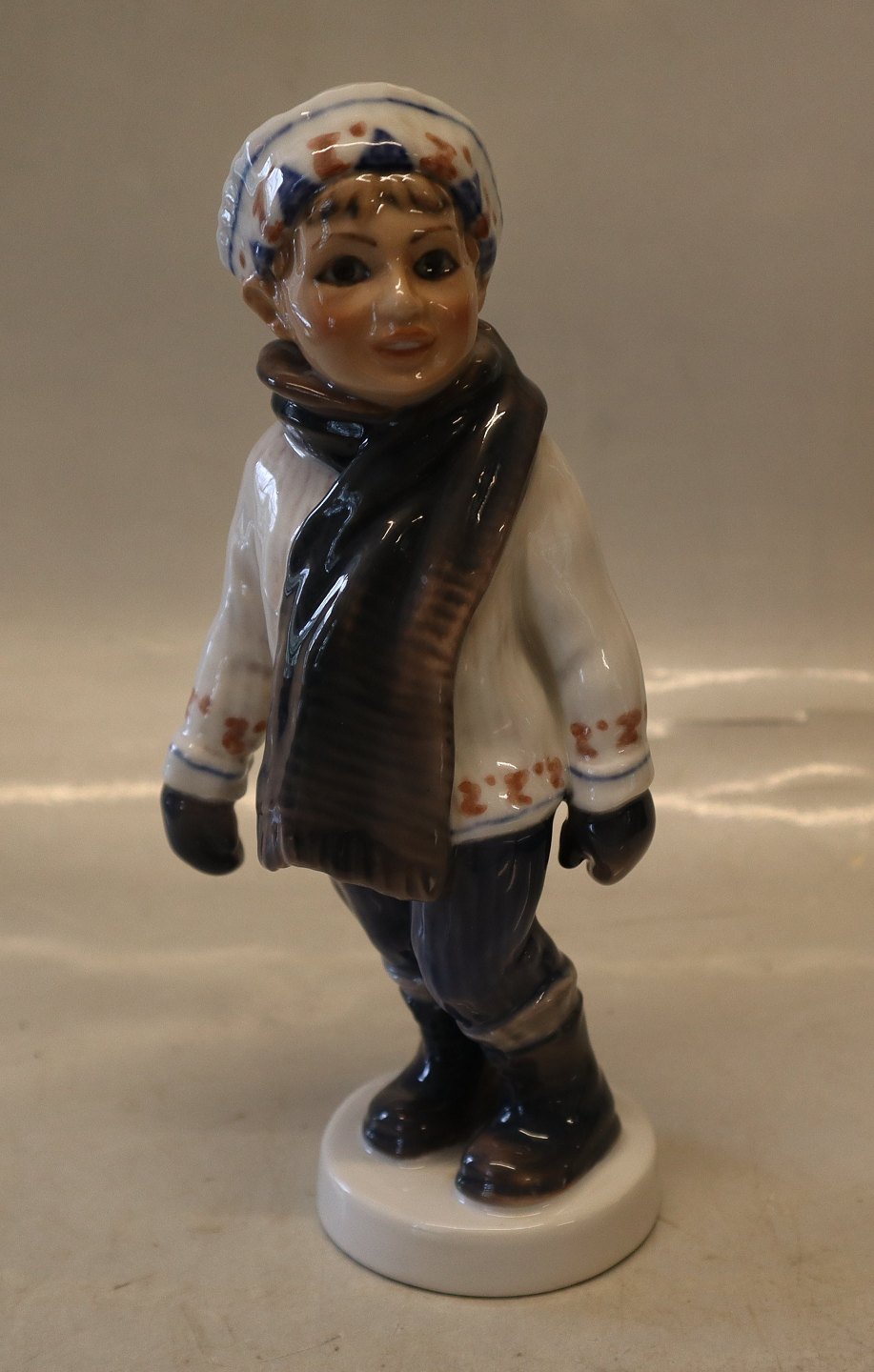 Dahl Jensen 1064 Boy in winter (DJ) 19.5 cm Marked with the Royal Crown and DJ Copenhagen. In nice and mint condition Dahl Jensen Worked first for Bing & Groendahl B&G from 1897