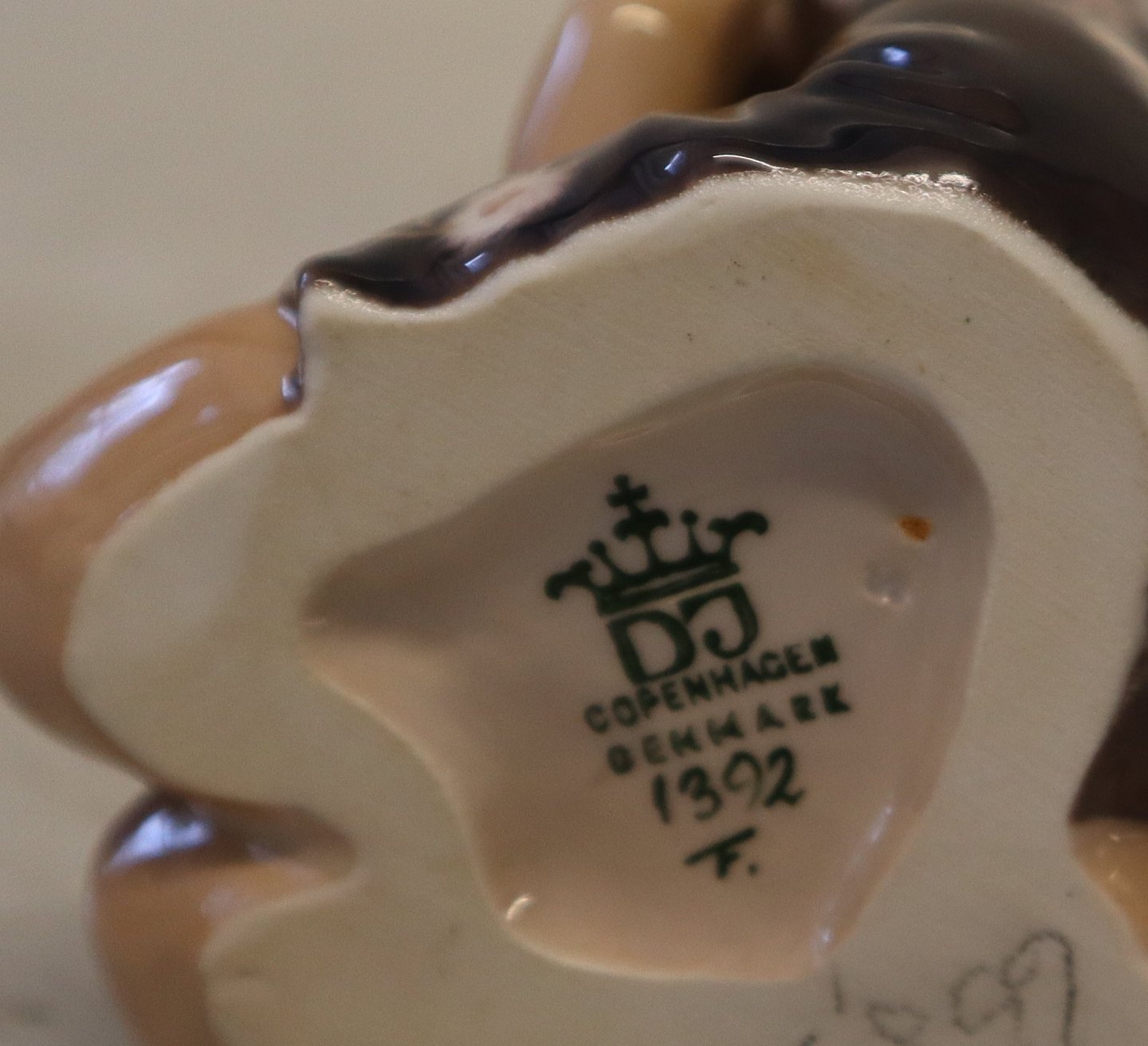 Description: Dahl Jensen 1392 Lisa - Girl in blue dress (Johan Galster) Dark dress Marked with the Royal Crown and DJ Copenhagen. Both versions are sold In nice and mint condition Dahl Jensen Worked first for Bing & Groendahl B&G from 1897