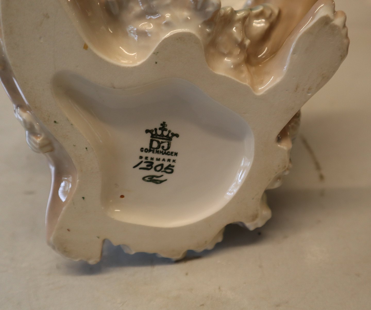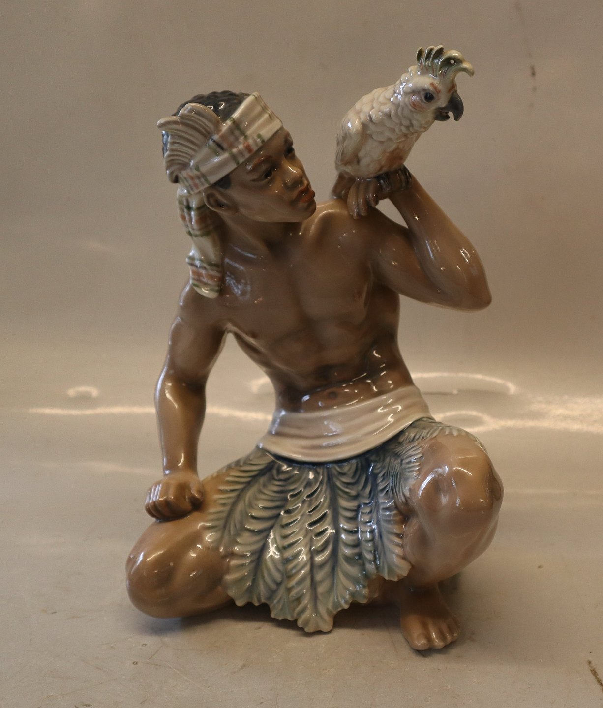 Description: Dahl Jensen 1305 Sudanese Man with cockatoo (DJ) 23 cm Oriental Man with bird Marked with the Royal Crown and DJ Copenhagen. In nice and mint condition Dahl Jensen Worked first for Bing & Groendahl B&G from 1897