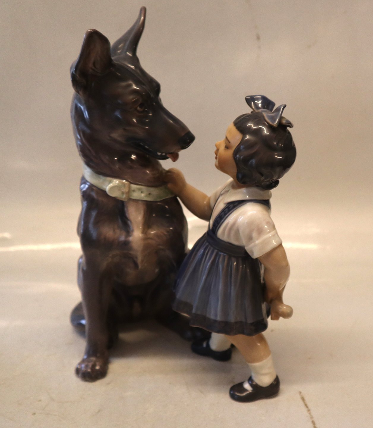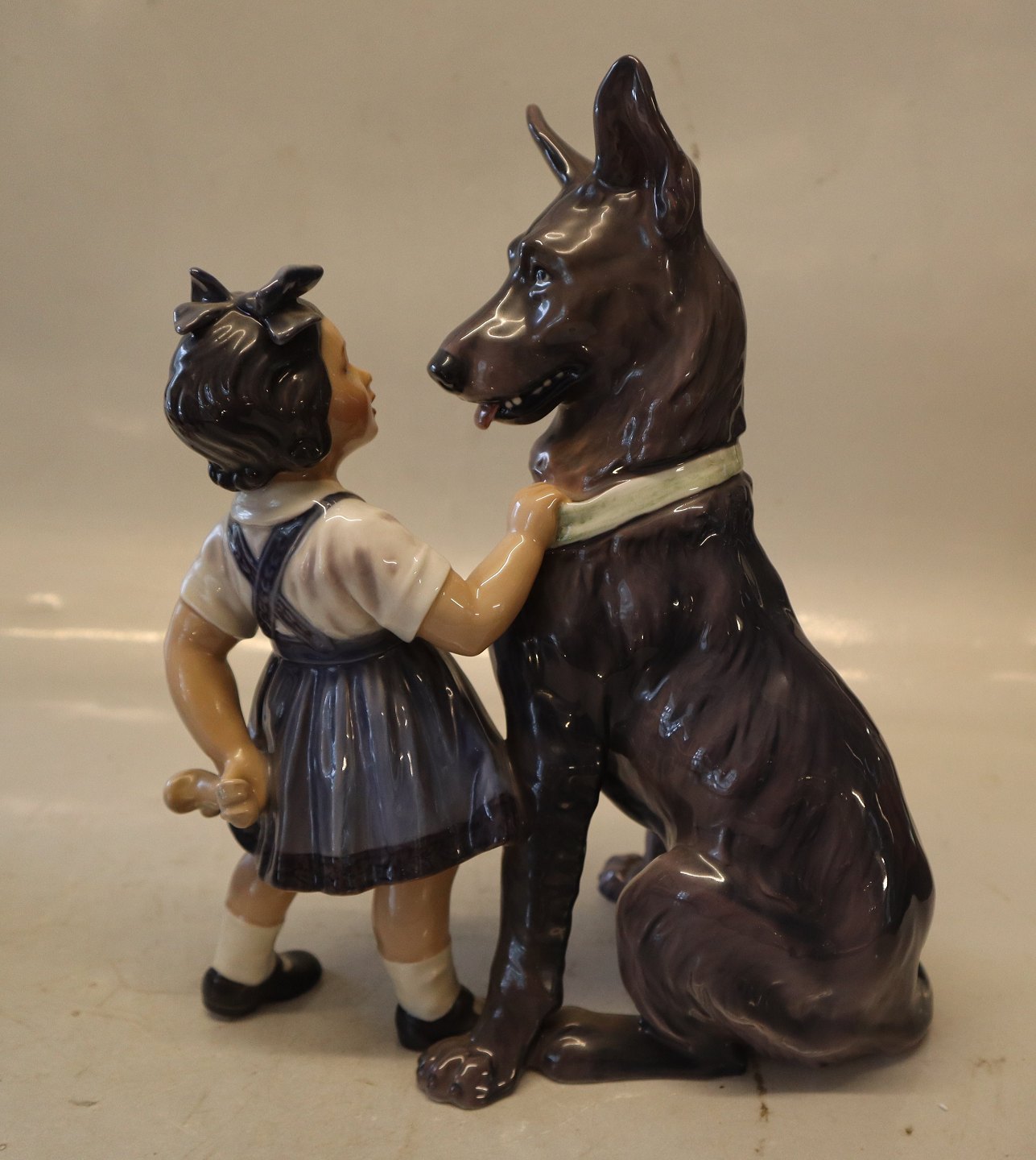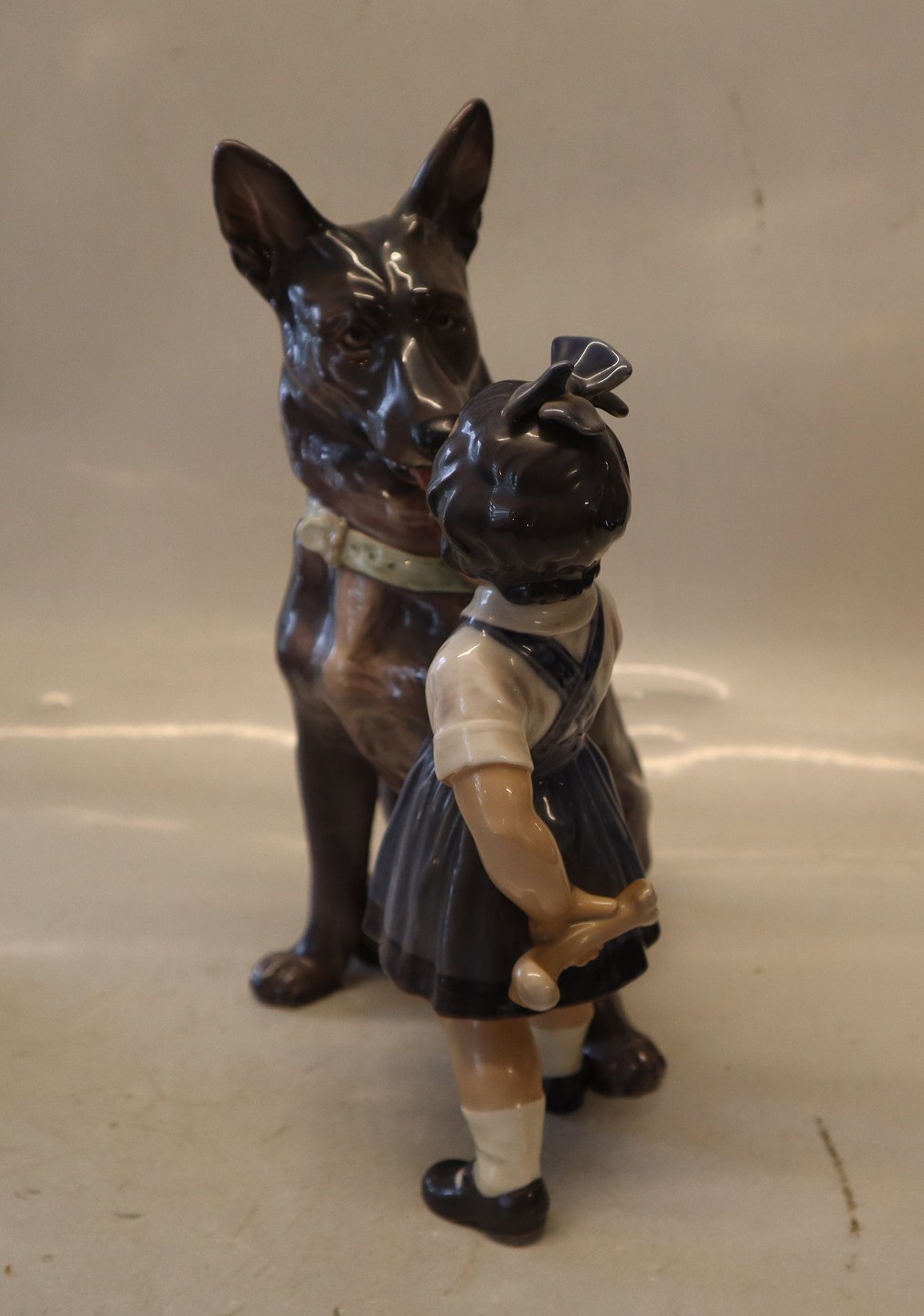 Description: Dahl Jensen 1213 German Shepherd dog with Girl (DJ) 25 cm Marked with the royal Crown and DJ Copenhagen. In nice and mint condition