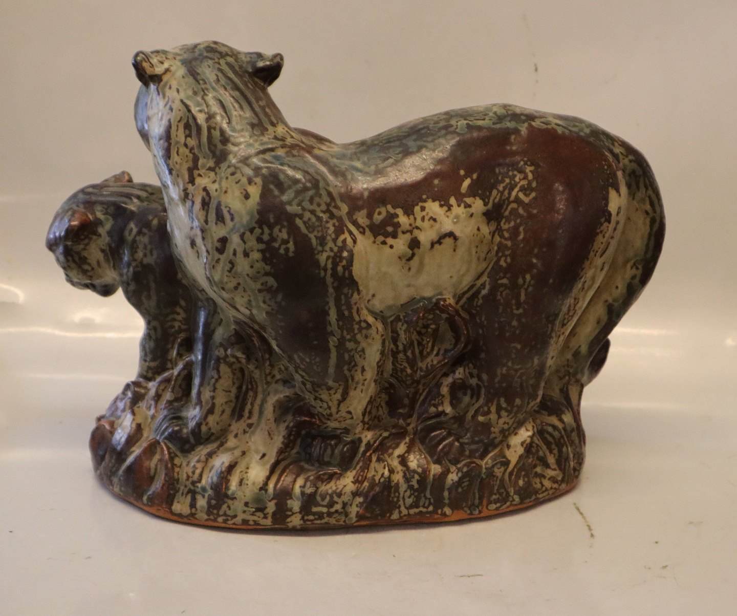 Royal Copenhagen Stoneware 20263 RC 2 Panthers 28 x 40 cm, Knud Kyhn, June 1931. In nice and mint condition