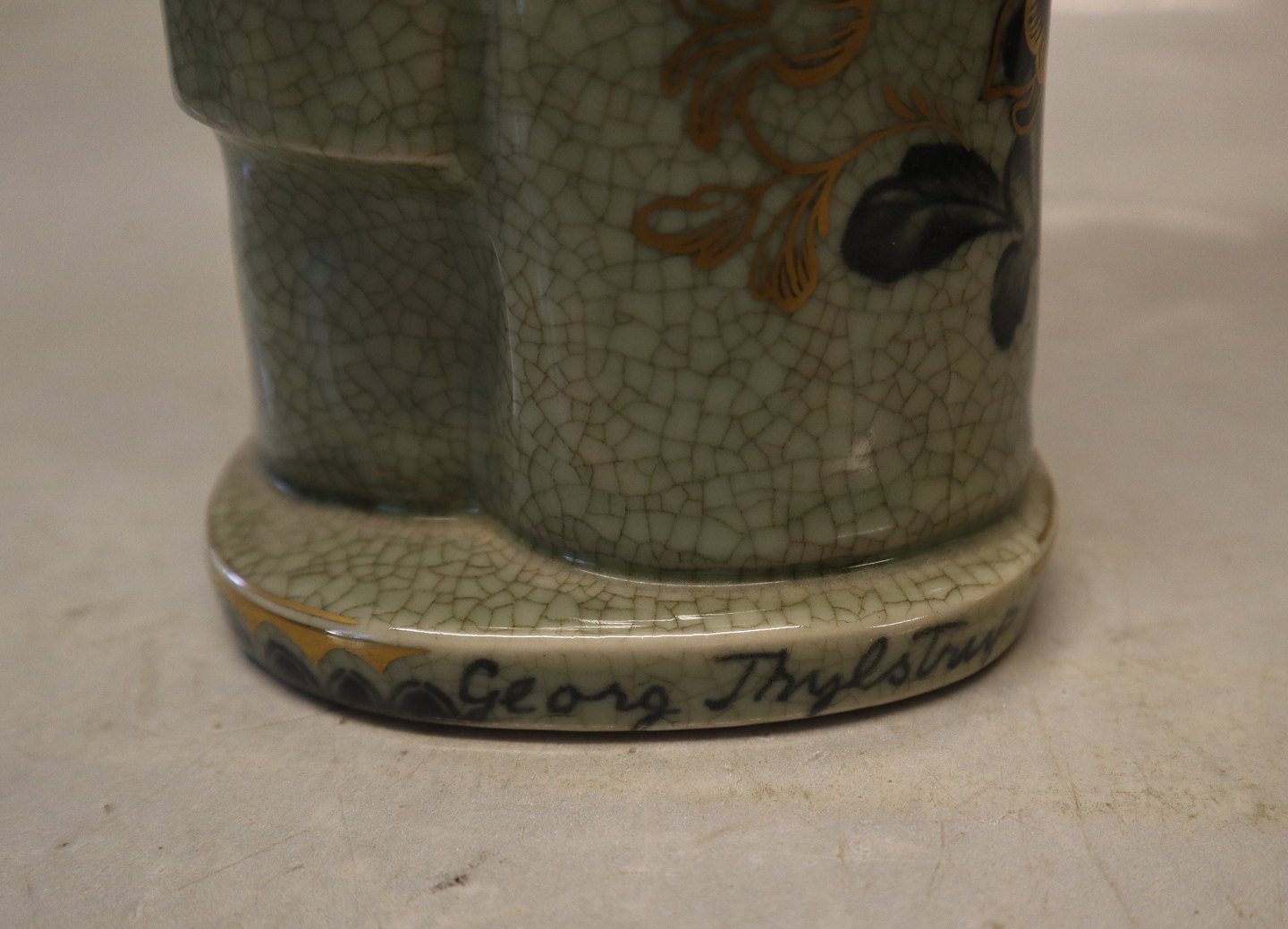 Description: Royal Copenhagen Grøn Craquelé 1618 Chineese couple 25 cm Georg Thylstrup Green Crackle