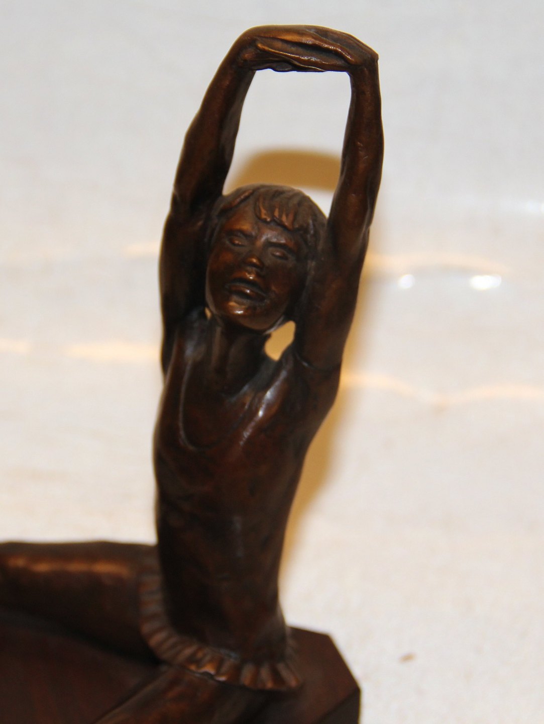 Description: Sitting Ballet Girl Bronze on Triangular stand 18.5 x 22 cm Signed SGK