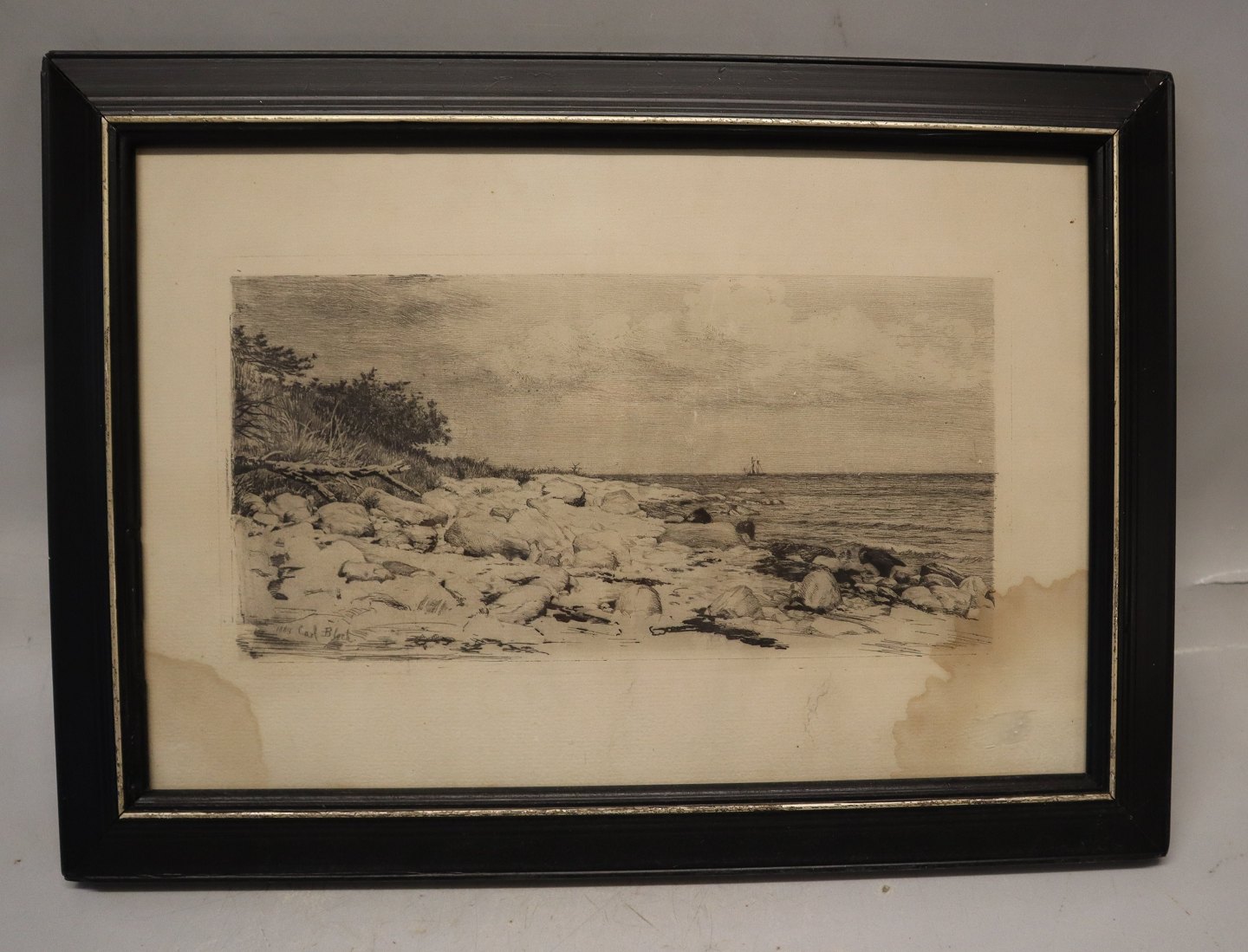 Carl Bloch Etching 1889 29 x 40 cm in old black wooden frame