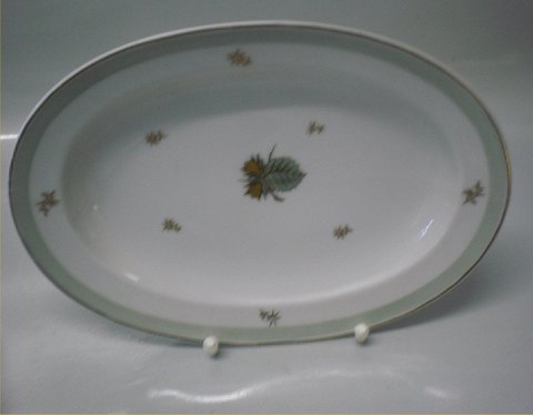 018 Oval dish 24 cm (318) B&G Hazelnut (Elsinore): White base, golden nuts, green leaves, green band and gold rim, form 601 Haselnuss