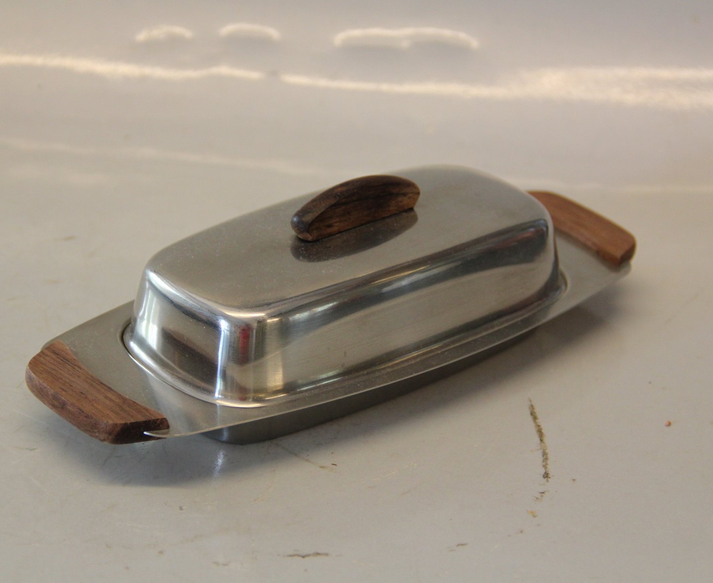 Stainless Steel 18-8 Smørfad med låg 15 x 10 cm Made in Denmark