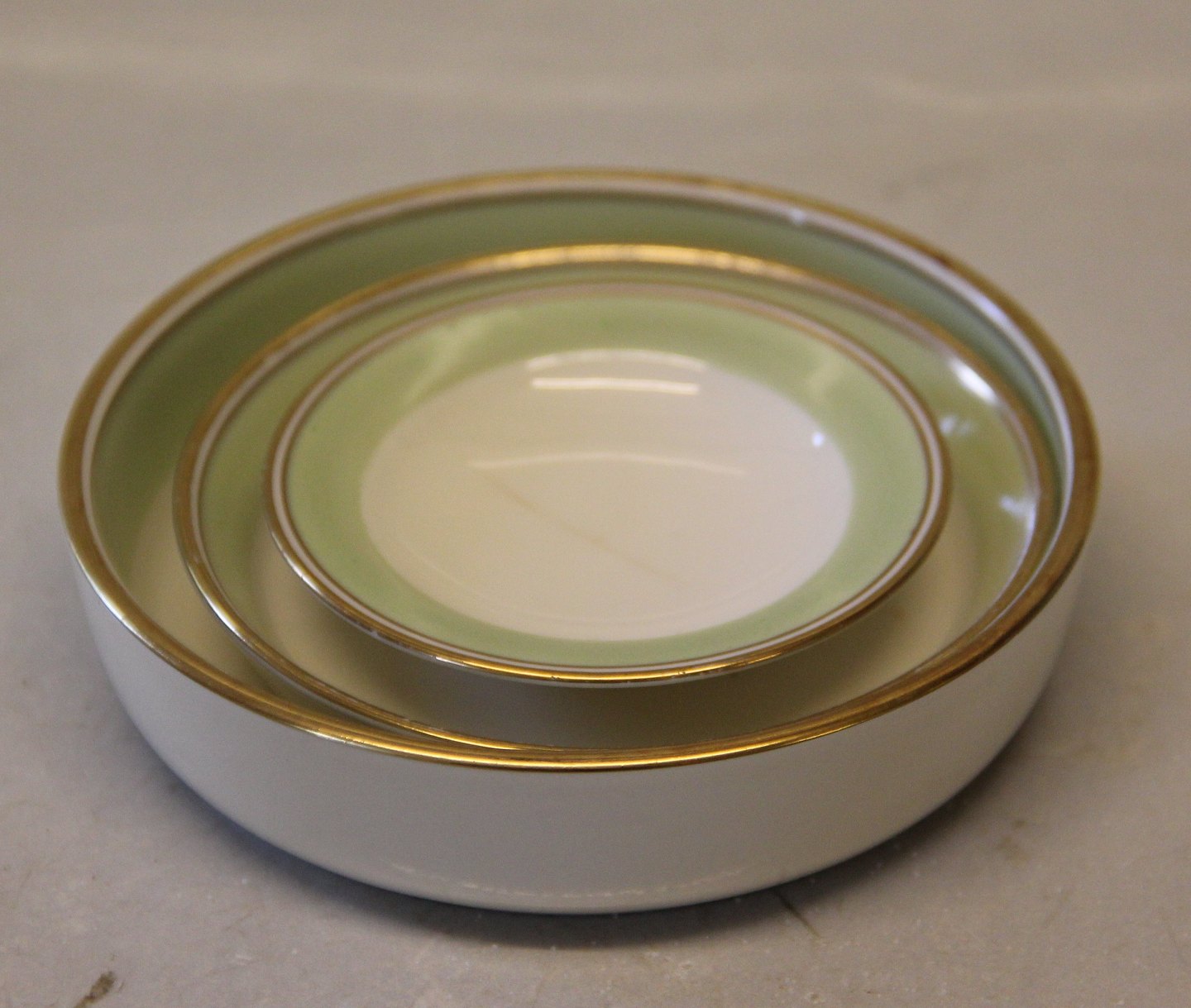 2422-1236 Butter pad, round 9 cm Broager #1236 Royal Copenhagen Royal Copenhagen: Green decoration on creame. Design Thorkild Olsen (1890-1973), Painter. AT RC 1908-1968. TO also created other dinnerware: "Dagmar";