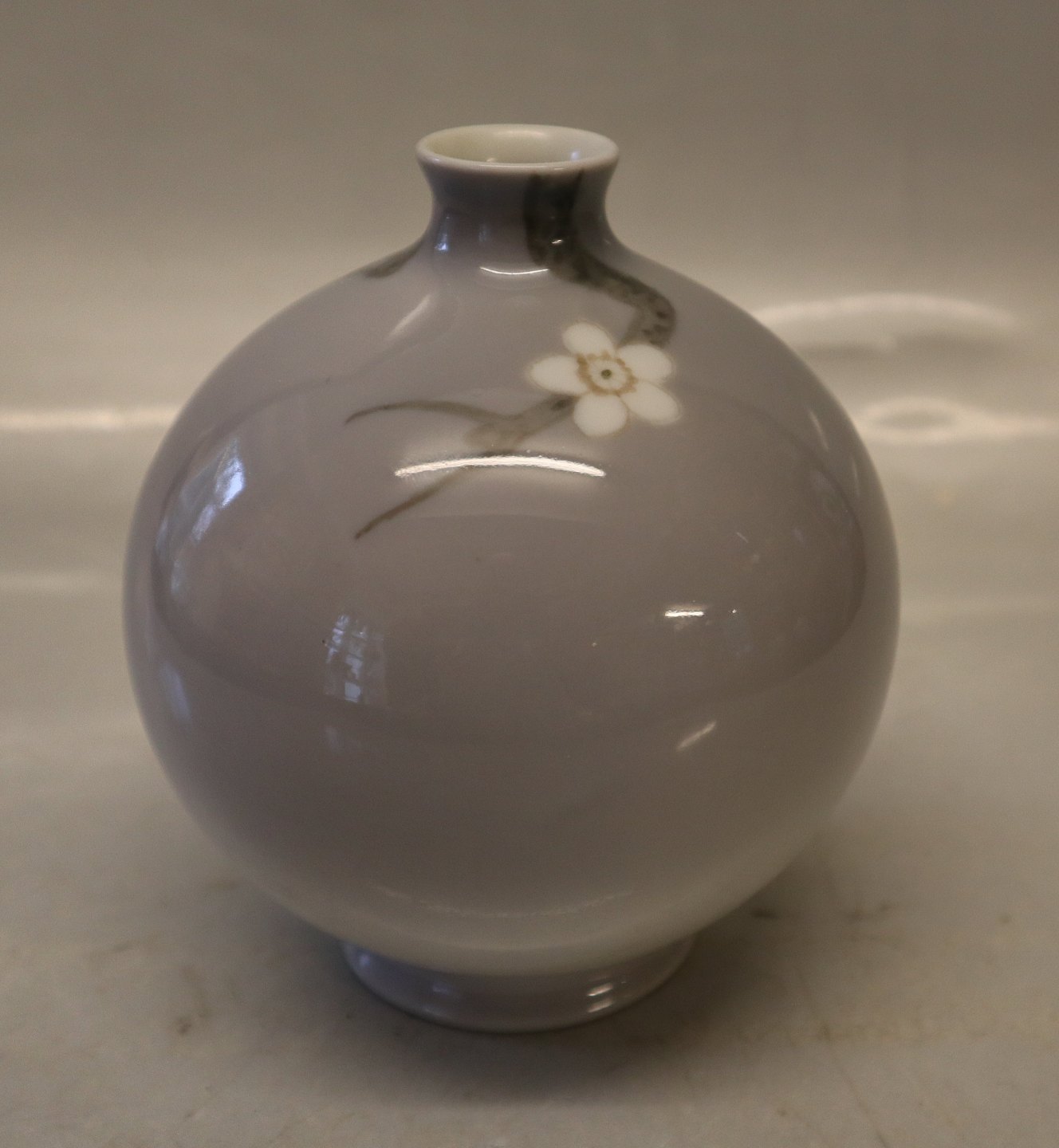 Beskrivelse: B&G 436 Art Nouveau Vase med blomstrende frugtgren 12.5 cm Bing & Grøndahl I fin og hel stand.
