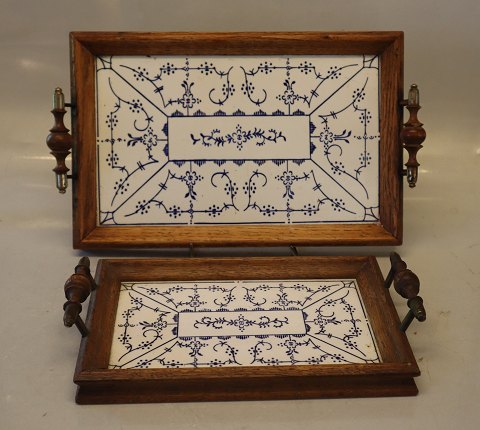 Trays with Blue Fluted Faience with wooded frame and handles