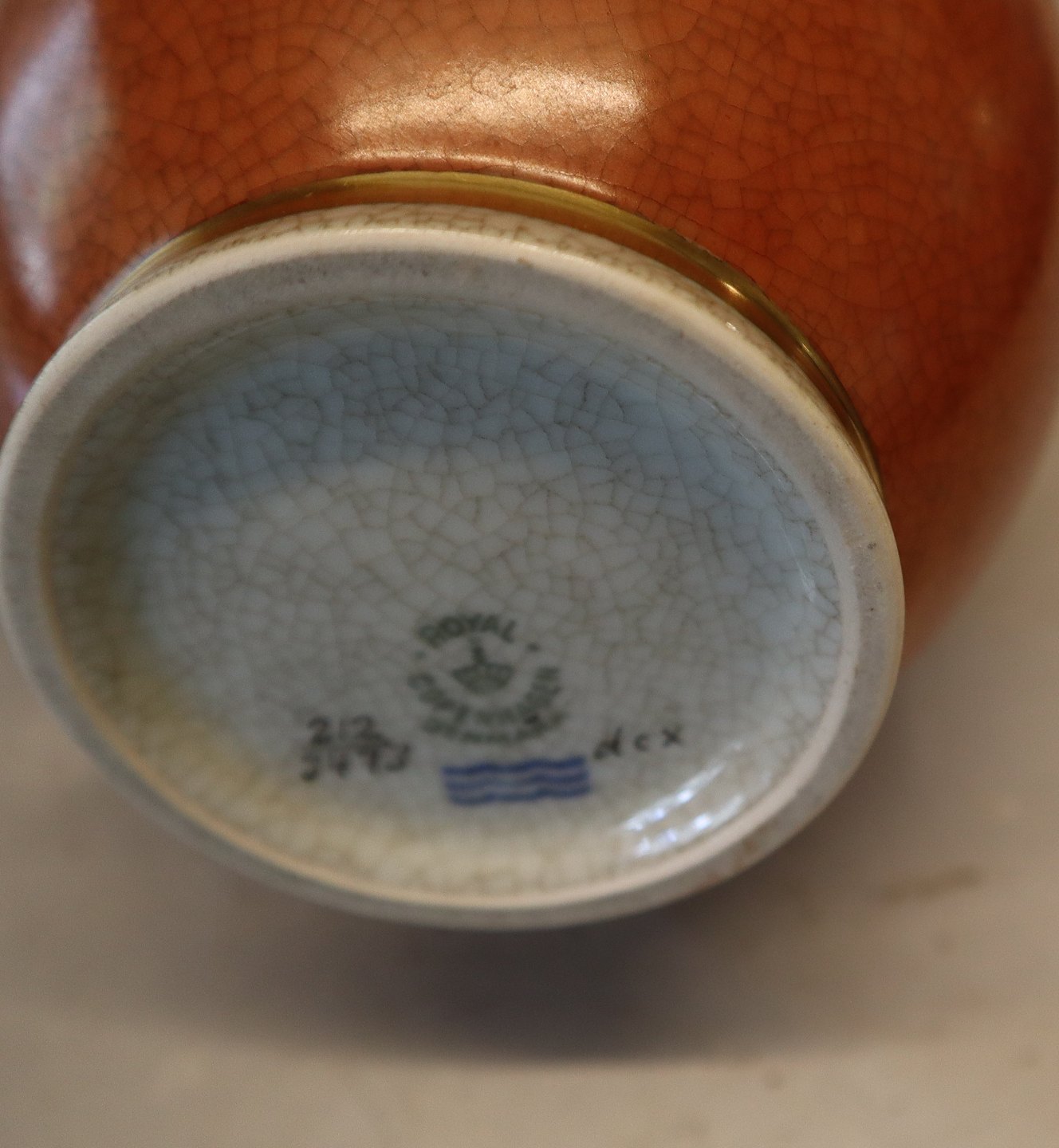 Description: 212-3473 RC Orange vase with gold and grey 25 cm Royal Copenhagen Crackleware Craquelé, (Crackelure)