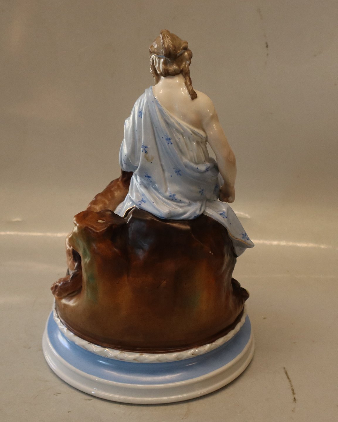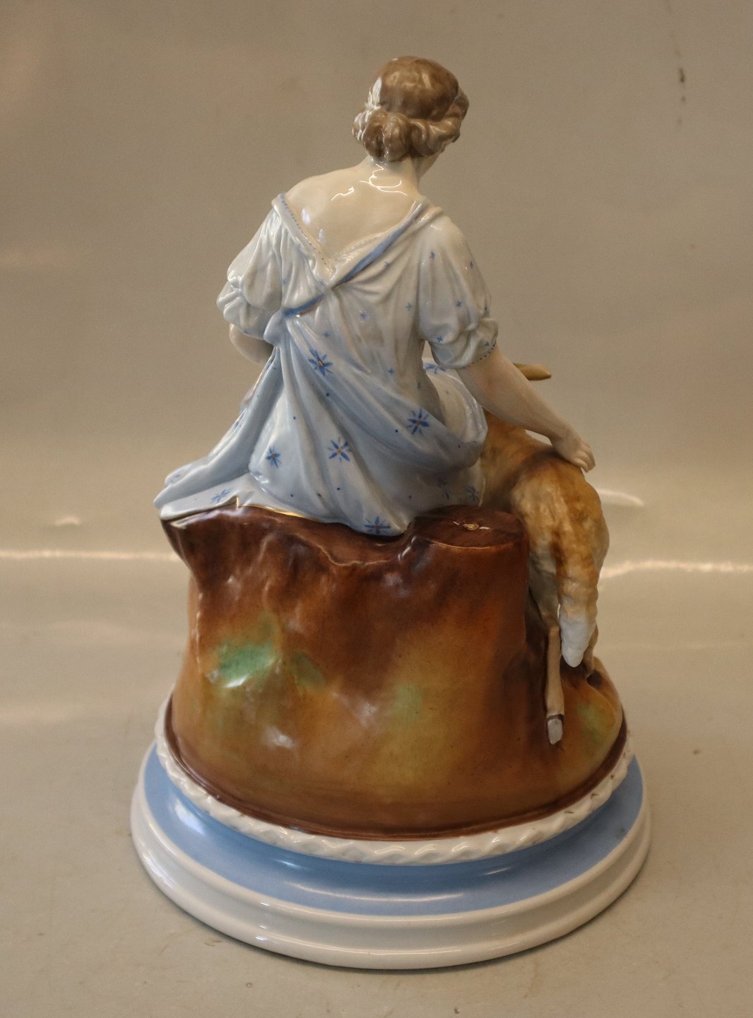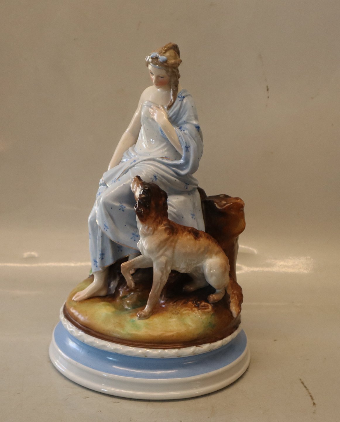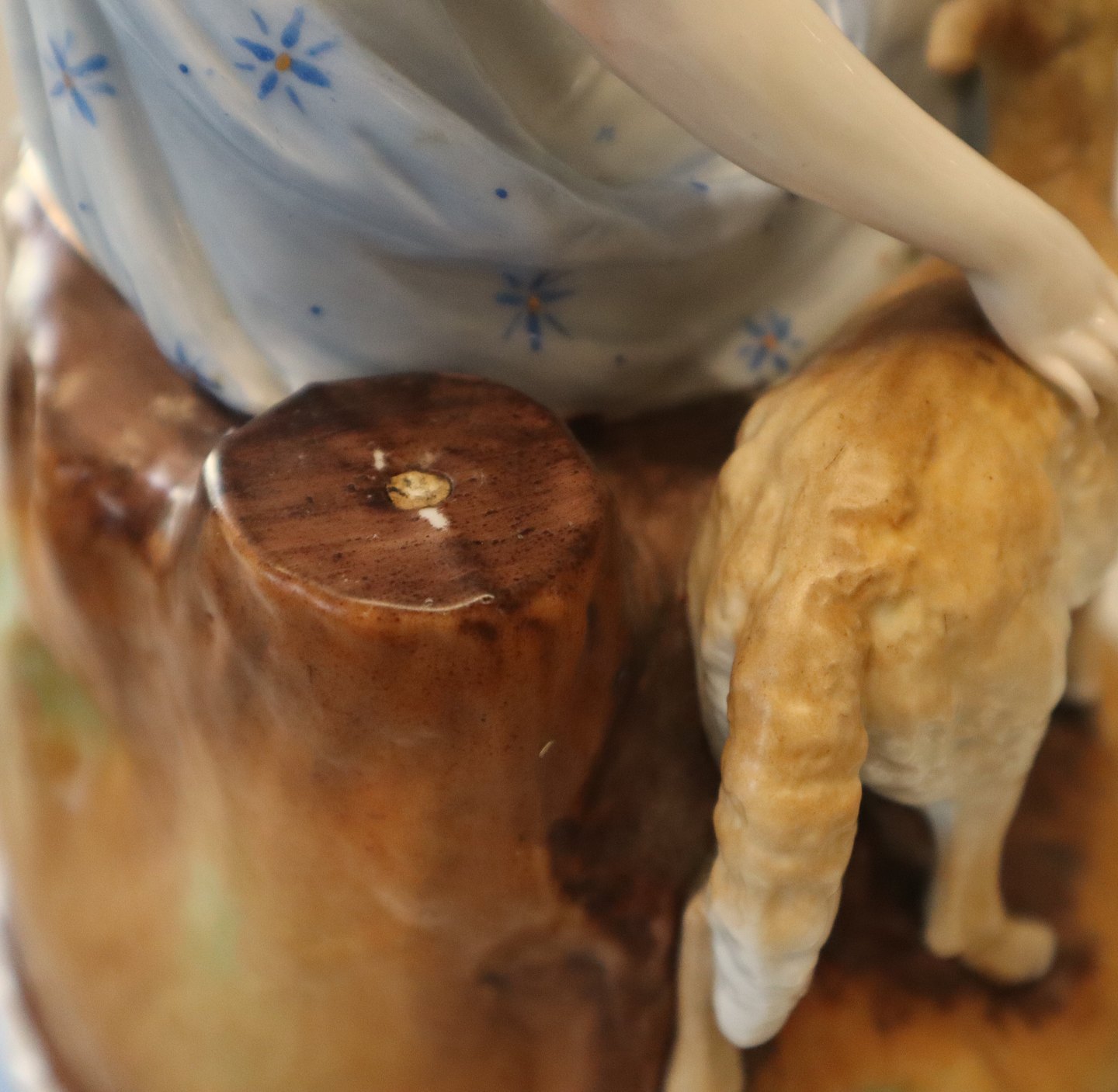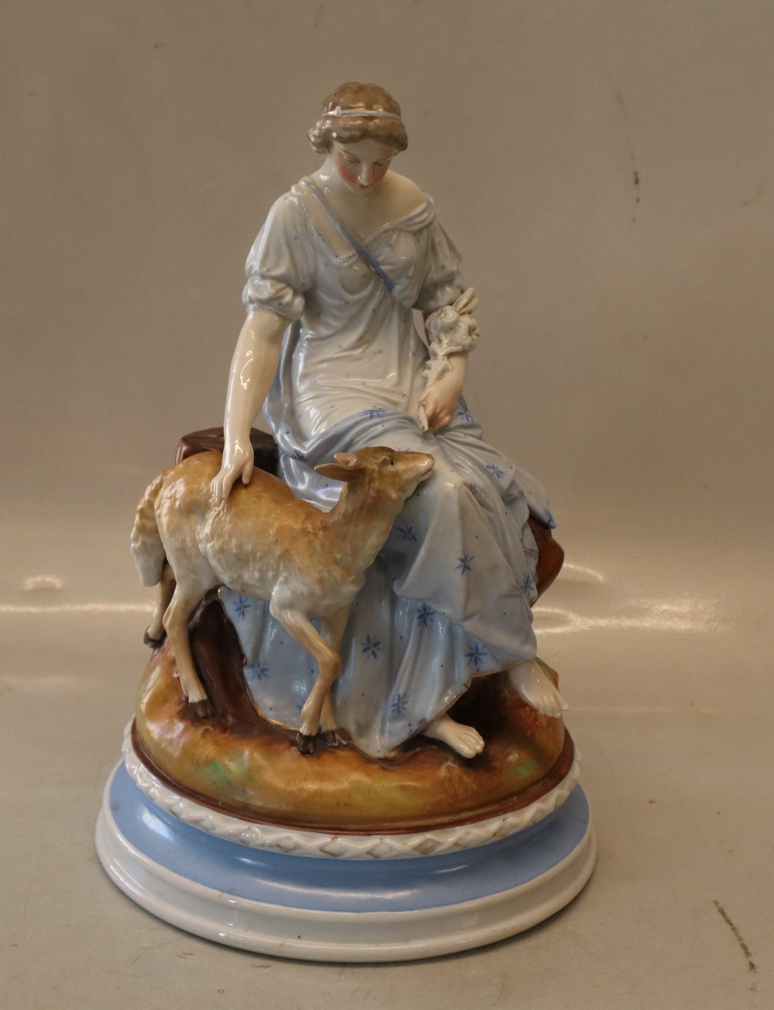 2 Antique European figurines 29 x 18.5 cm Woman with dog and Woman with kid goat
