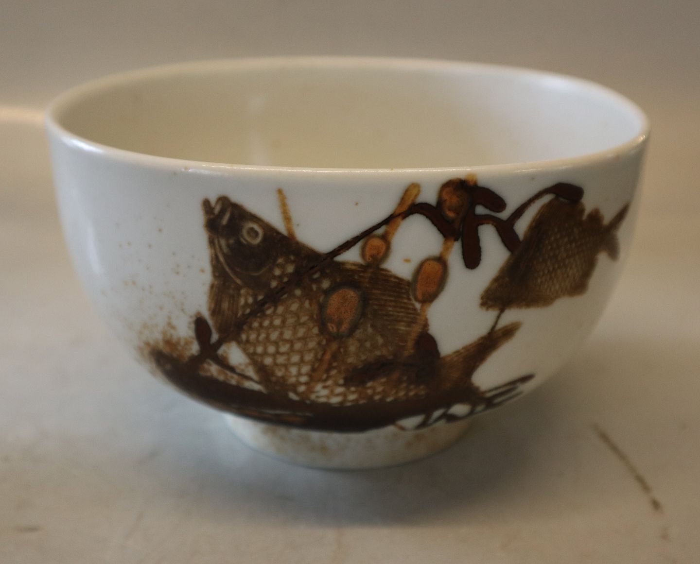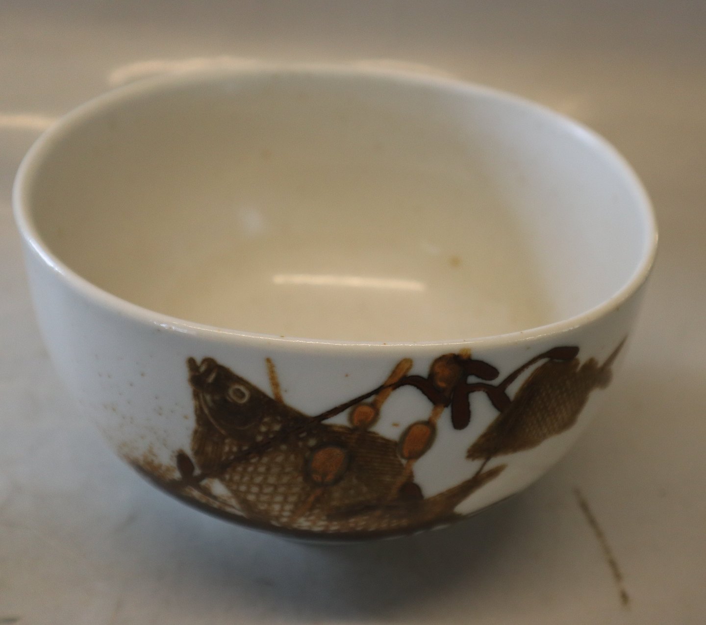 1053-5318 RC Alumnia Diana Stoneware bowl with fish 10 x 17 cm Nils Thorsson Royal Copenhagen Aluminia Faience